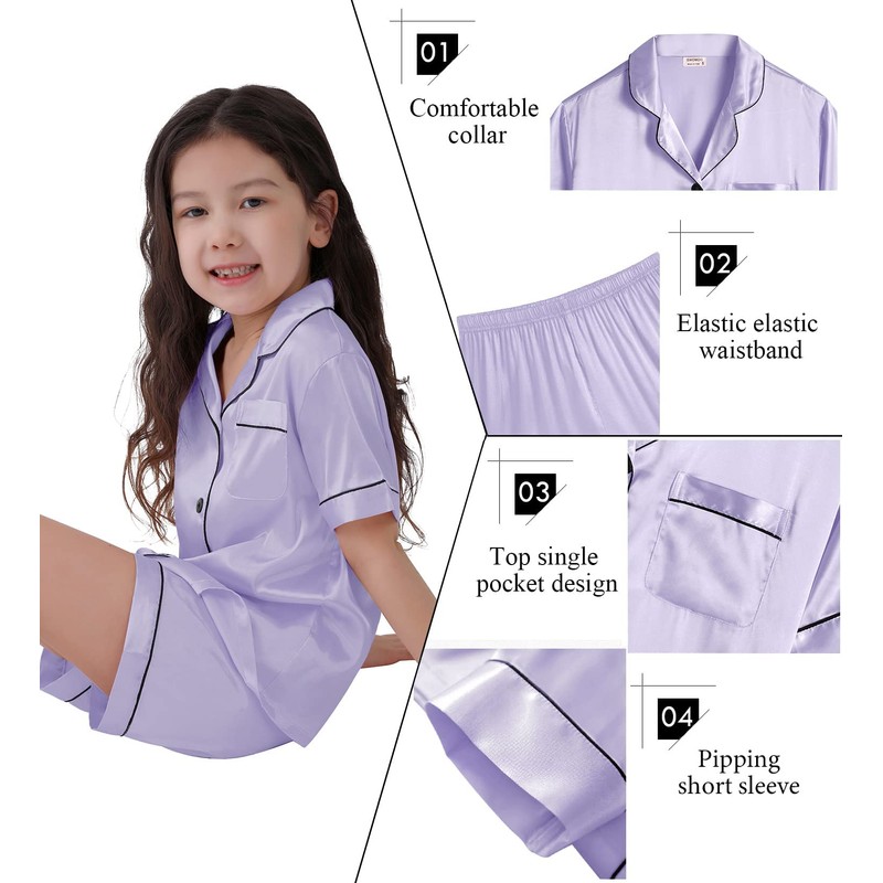 - Present - The children satin sleepwear sets is perfect for sleeping, bathing and lounging indoor and outdoor. Great presents for daughter, son, granddaughter, grandson, close friends, ect as birthday gift other present.