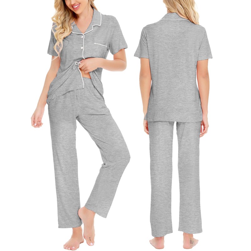 SWOMOG Women Pajama Sets Two-Piece Nightwear Short Sleeve Sleepwear Button Down Pj Lounge Sets with Long Pants Gray