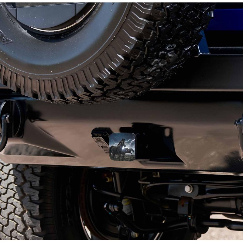 Swono 2 inch Tow Hitch Cover Black Horse Pattern Rubber Trailer Hitch Receiver Cap(1Pack)