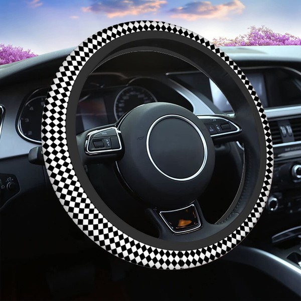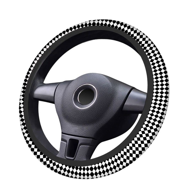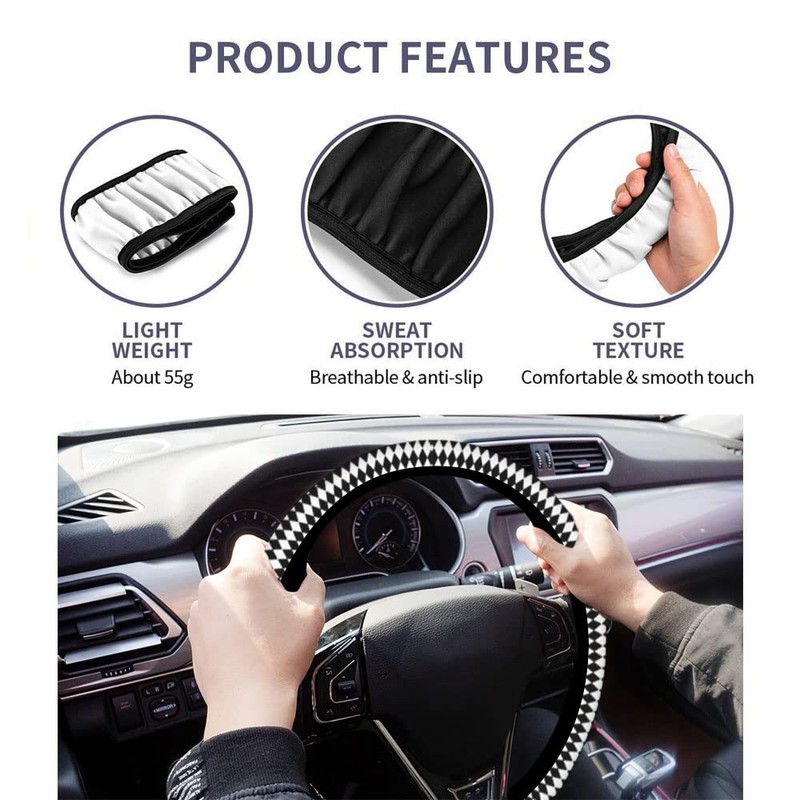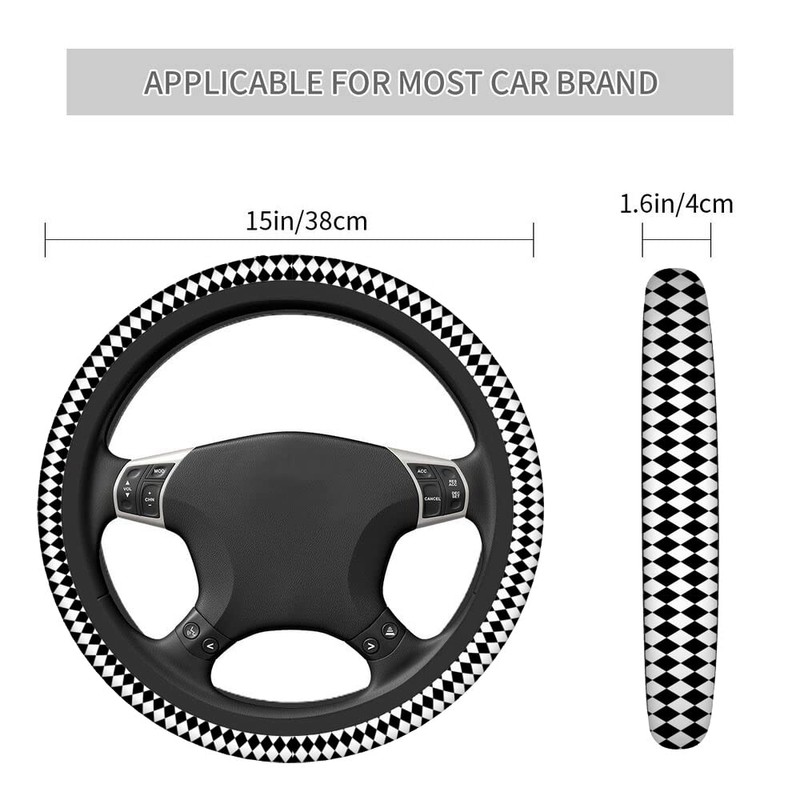 Swono Diamond Car Steering Wheel Cover Universal 15 Inch with Grip Contours Diamond Shape Pattern White and Black Neoprene Auto for Men and Women Non-Slip Breathable Soft