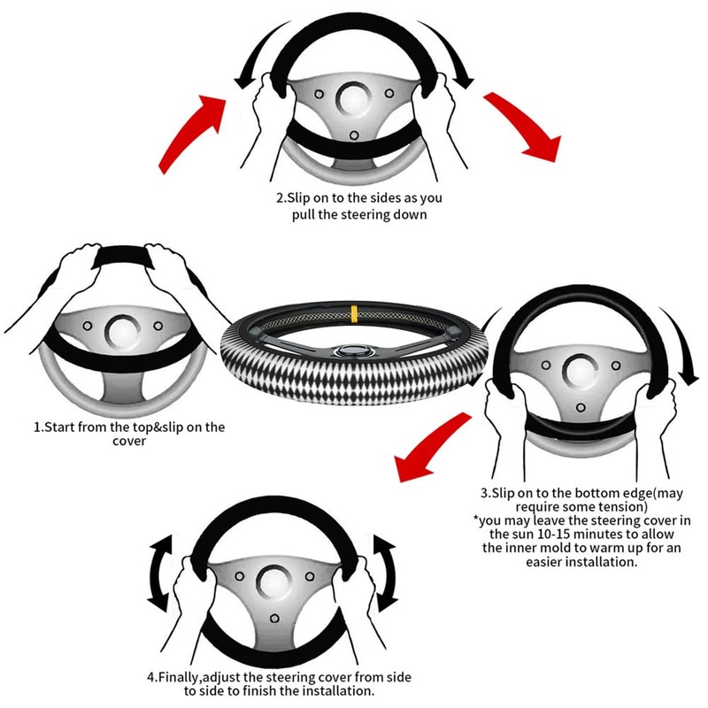 The Steering Wheel Cover Is Made Of Top-Quality Neoprene, Which Is Environmentally Friendly, Durable And Non-Slip, Which Can Extend The Life Of The Product And Provide Moderate Protection In Hot And Cold Weather. Not Only Can It Protect Your Original Steering Wheel From Wear And Tear, But It Can Also Decorate Your Car And Give Your Steering Wheel A New Look. The Word Steering Wheel Cover Is Easy To Install And Does Not Require Other Tools.