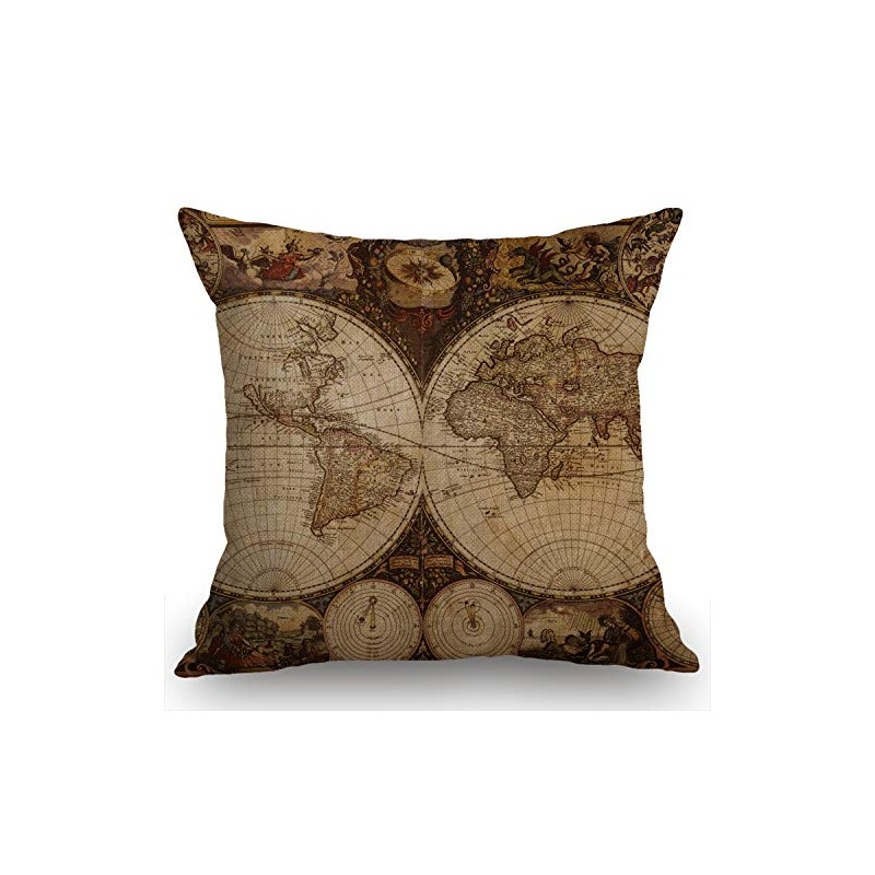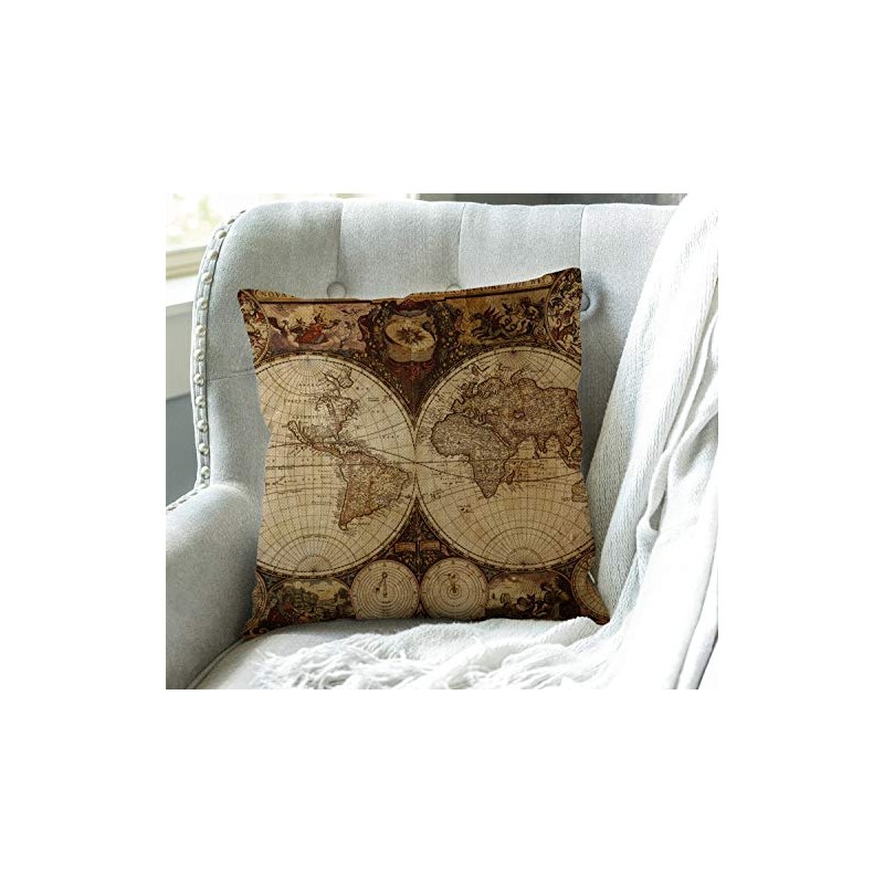 Swono Old Map in 1720s Nostalgic Style Art Historical Atlas Cotton Linen Throw Pillow Case Home Decorative Cushion Cover for Sofa Couch Bedding 18x18 Inches