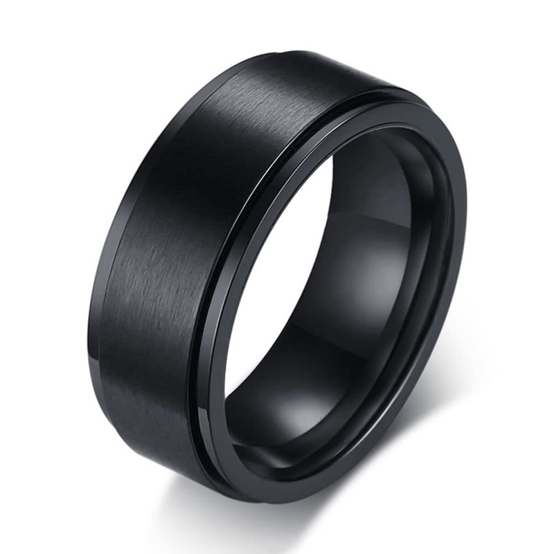 - PREMIUM QUALITY MATERIAL - These spinner rings are made of high grade stainless steel, water-proof, comfort fit, cobalt free, anti-allergic, never fade, never rust, will not turn your finger green, comfortable to wear. IP black plating to ensure color retention. Brushed finish with stepped beveled edge and high polished inner face, makes the ring durable, weighty, scratch resistant and hypoallergenic, and smooth surface will not scratch your fingers, gives you a pleasant feeling in daily.
