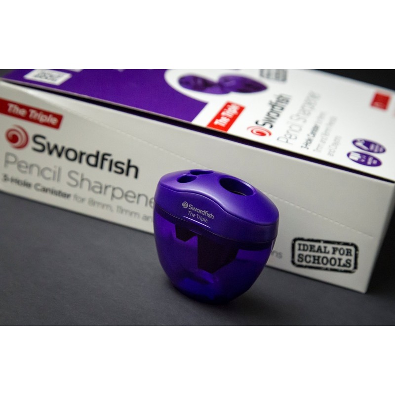 The Swordfish 40228 ‘The Triple’ 3 Hole Purple Sharpeners are ideal for standard 8mm pencils, jumbo 11mm pencils and 16mm crayons up to 16mm in diameter.