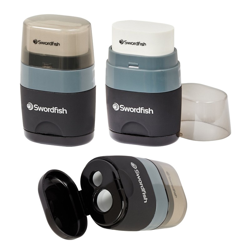 • Swordfish erasers are PVC, Latex and Phthalate Free, ensuring no harmful chemicals are used during manufacturing process, with handy click-on lid protecting the eraser