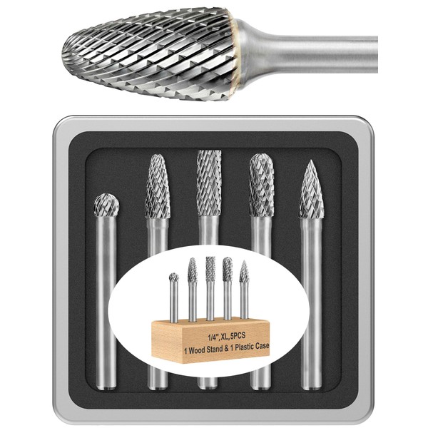 Sworker 5 Pcs 1/4 Carbide Burr Set 1/4 Shank Die Grinder Bits Drill Bits Grinding Bits for Metal Rotary Tool Attachment Accessories Rasp Weld Wood Stone Deburring Compatible with Milwaukee Dewalt