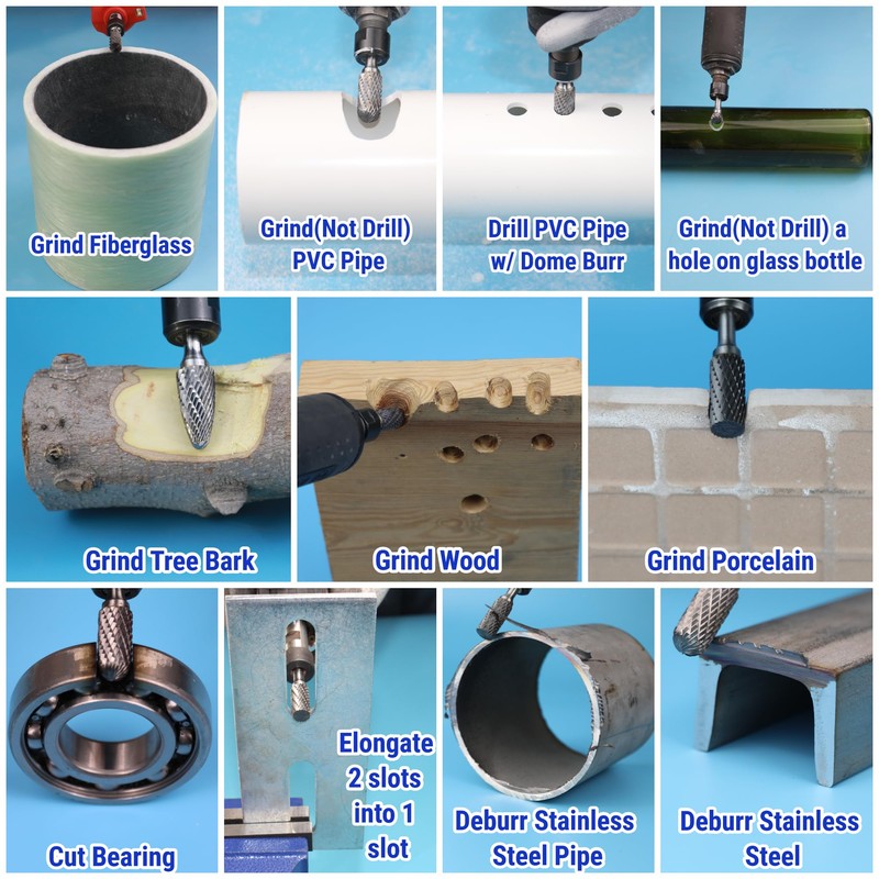 - Versatile: carving, chamfering, cleaning, contouring, cutting, deburring, elongating, engraving, grinding, meatalworking, milling, MRO, polishing, porting, sculpting, shaping, shaving, tooling, trimming, metal, wood, stone, steel, concrete, welds and plastic, etc.