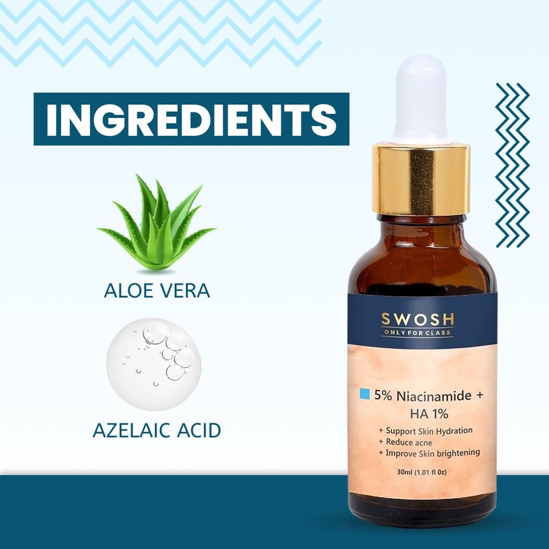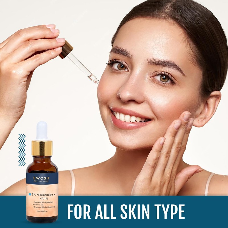 SWOSH 5% Niacinamide Face Serum With Hyaluronic Acid 1% Serum For Face (30ML) For Pimple Prone & Oily Skin | Skin Moirsturising, Plumps, Nourishes And Hydrates Skin
