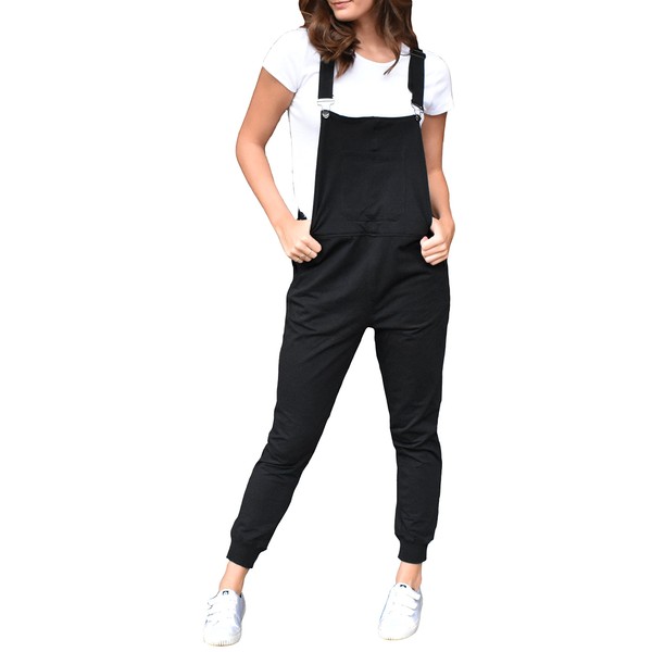 Swoveralls Overalls UPGRADED Unisex Sweatpant, Large, Midnight Black, Organic Cotton Blend, Men’s Overall, Women’s Overalls, Relaxed Fit Men & Women’s Bib Overall