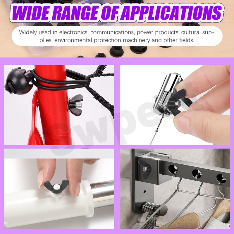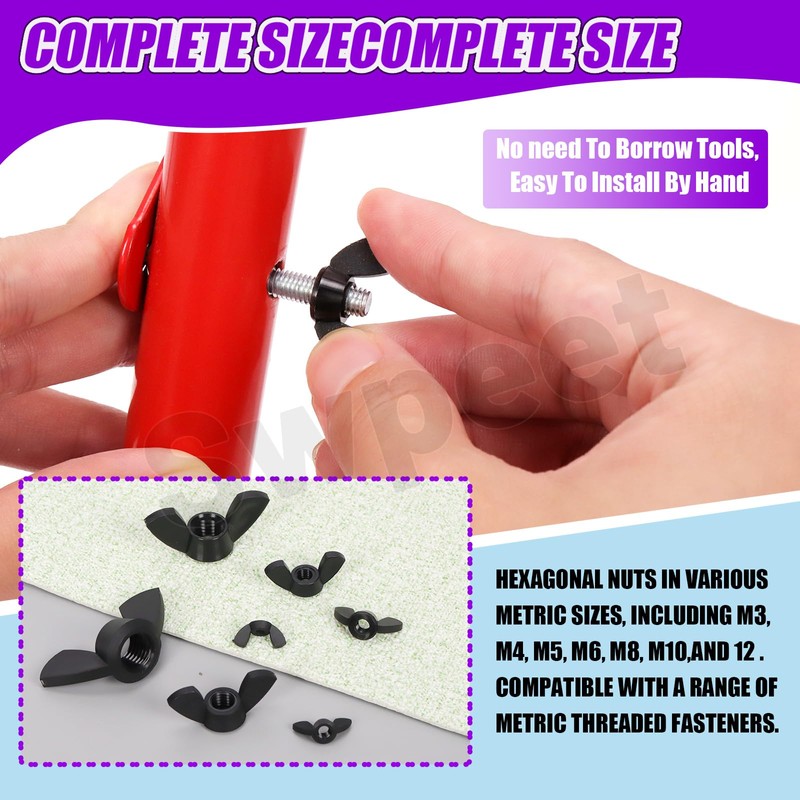 - 💯 110Pcs Wing Nuts -------- It contains 110Pcs of the Nylon Wing Nuts. Different types of Wing Nuts, designed to stand off the material to allow easy weld penetration, widely used to industrial machine. Used in conjunction with bolts and screws to connect and fasten the parts. Wing nuts are used to match screws and bolts to help secure items.