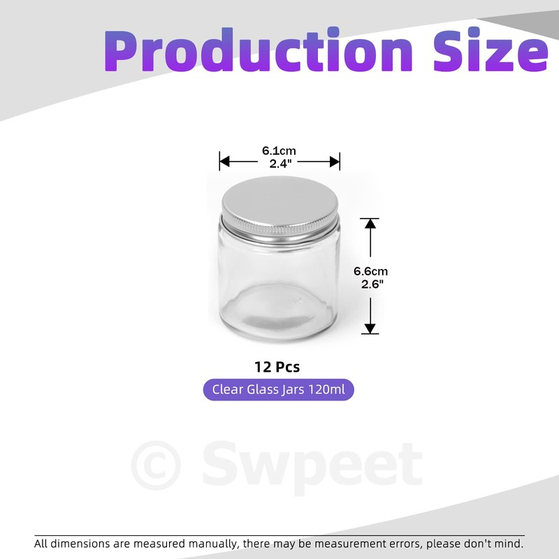 - What You Get ------- In this kit, You will get 12 Packs Transparent Glass Jar with Silver Lid Assortment Kit, Including 120ml - 4oz Transparent Glass Jar with Silver Lid: 8Pcs. Intotal 8 Packs round glass jar with lid is made of high-quality glass. The plastic Silver lid can't rust. You can carry the small cosmetic containers anywhere.