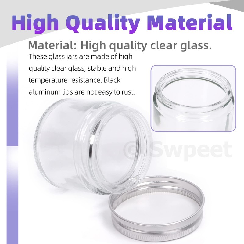 - Transparent Glass Jar with Silver Lid --------- We have prepared many different sizes for you, Including 3 Various Kinds Szies: 2oz, 4oz, 8oz. Made of thickened glass. It's stable and high-temperature resistance. With no scratched lids protected in bags. You will love the glass jars for beauty products.