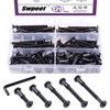 Swpeet 120Pcs M6x35mm/45mm/55mm/65mm/75mm Carbon Steel Black Hex Drive Socket Cap Bolts Barrel Nuts Kit with 1Pcs Allen Wrench, Screw Post Fit for Furniture Countsunk Belt Buckle Leather Binding Bolts