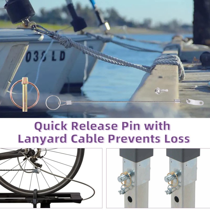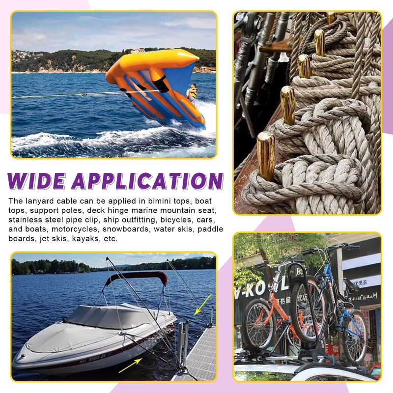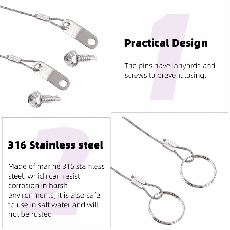 - 💢 Wide Appliations ------ The lanyard cable can be applied in bimini tops, boat tops, support poles, deck hinge marine mountain seat, stainless steel pipe clip, ship outfitting, bicycles, cars, and boats, motorcycles, snowboards, water skis, paddle boards, jet skis, kayaks, etc. The steel is hardened and zinc coated for corrosion protection, the pins were the correct diameter.