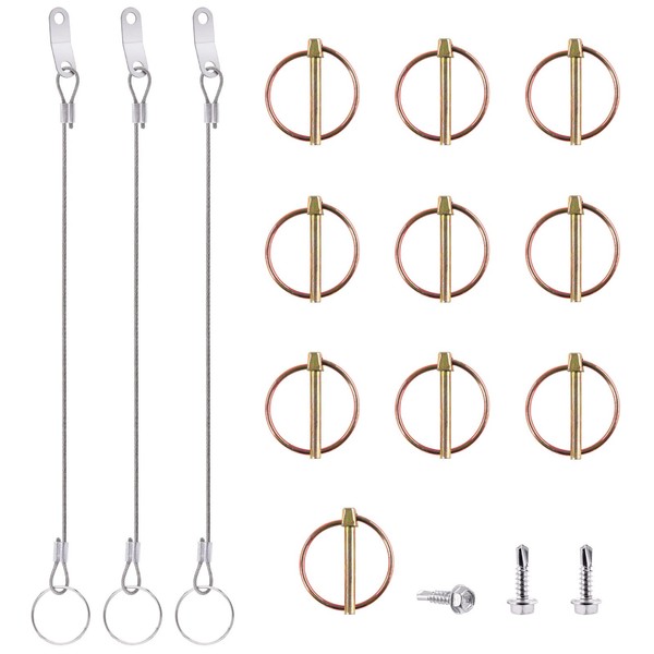 Swpeet 15Pcs 5/16 x 1"-3/4" Spring-Loaded Lynch Pin Linch Pin and Stainless Steel Lanyard Cables and Quick Release Ring with 410 Stainless Steel Self Drilling Sheet Metal Screws Kit for Farm