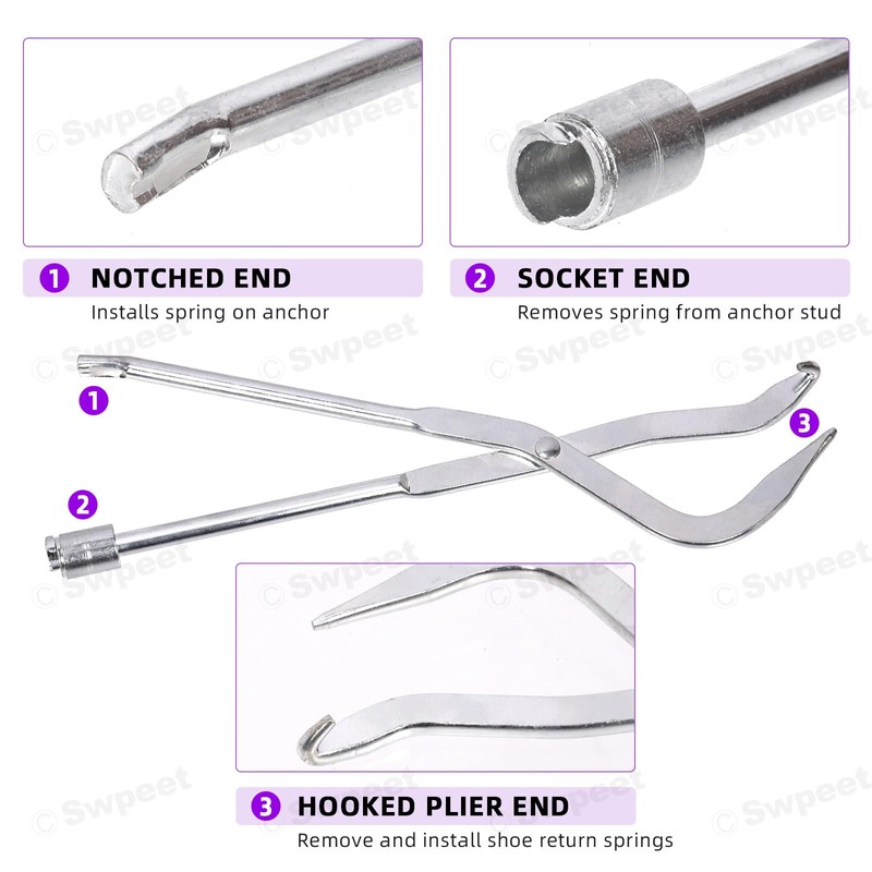 - 💥【What You Get】------- In this kit, you will get 1pc brake spring plier. 100% brand new aftermarket brake spring removal plier with premium quality. Use these Pliers to easily remove and install shoe return springs on most drum brakes.