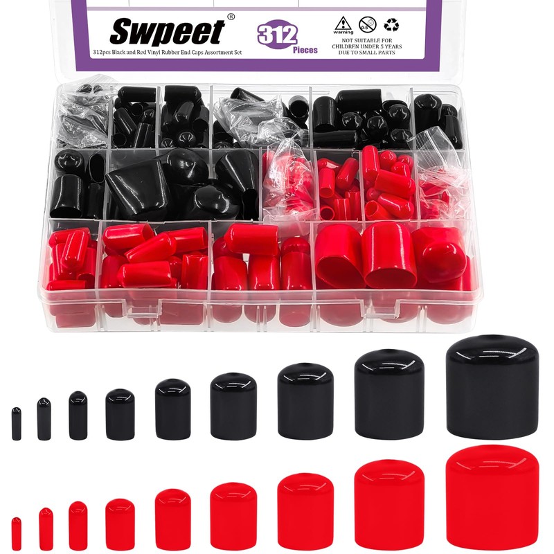 - 💯 What You Get: In this kit, you will get 312Pcs 2 Colors 9 Sizes 2mm 3mm 4.5mm 6mm 7mm 8mm 9.5mm 12mm 20mm Vinyl Rubber End Caps. Suitable for protecting different diameters of round tubes, screws, and rods. Comes with a plastic box, you can store the end caps to prevent lose.