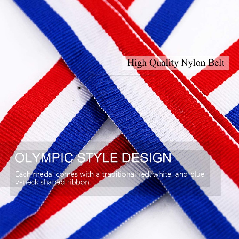 - ❤ What You Get: In this kit, You will get 3Pcs medals 1Pcs of each gold medal, silver medal, bronze medal with ribbons. The diameter of the medal is 2.6 inch; The length of the red ,white and blue ribbon is 15.5 inch.