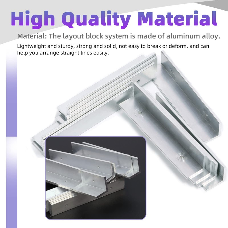 - 💯 【 Layout Block System Thoughtful Design 】 --------- The layout block system has a suitable size as marked in the picture, which is suitable for most sizes of workbenches, and can be fixed according to requirements; There are small holes on the aluminum alloy L shaped blocks, which is convenient for fixing with pushpins, and the pushpins are strong and wear resistant; After disassembly, they also can be applied on multiple work panels, convenient and fast.