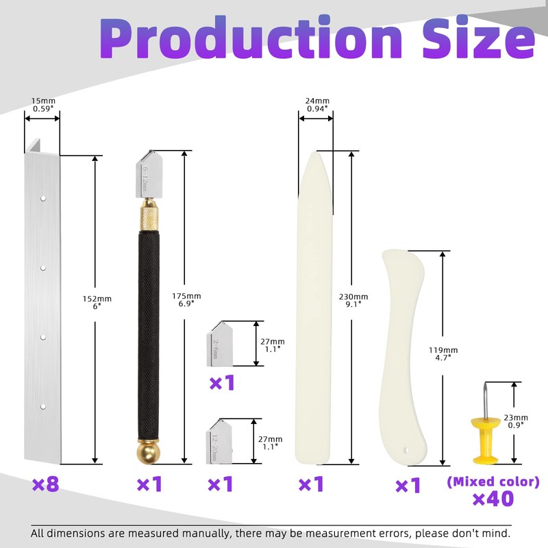 - 💯 【 What You Get 】 ------ In this kit, You will get 55Pcs Stained Glass Supplies Glass Cutter Kit, Including 1Pcs Glass Running Pliers; 1Pcs Glass Breaking Pliers; 1Pcs Glass Cutter; 2Pcs Replacement Blades; 6Pcs 6 Inch Panel Layout Block System; 1Pcs Screwdriver; 1Pcs Oil Dripper; 2Pcs Platic FID; 40Pcs Push Pins. Intotal 55Pcs can meet all your needs.