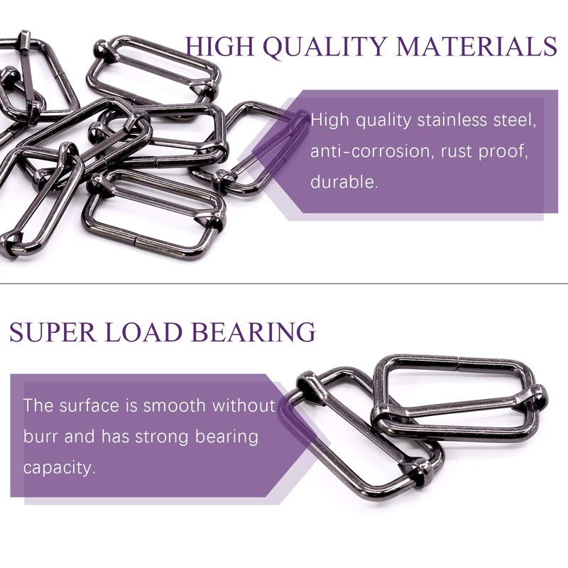 - ★ Metal Rectangle Adjuster Triglides Slides Buckle are suitable for making belts, harnesses and clothes, luggage belts and backpacks.