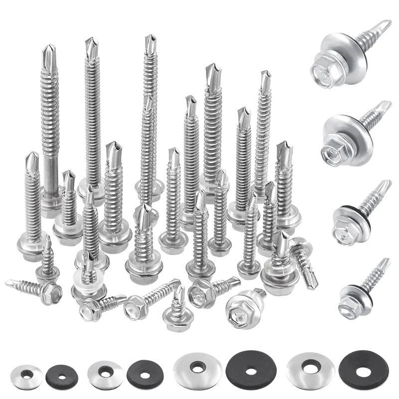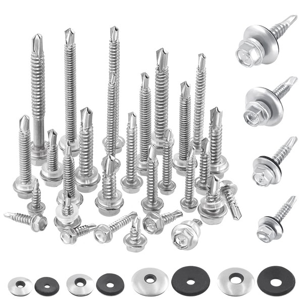 - 💥【 What You Get 】 ------- In this kit, You will get 70Pcs 410 Stainless Steel Self Drilling Screws with Stainless Steel Sealing Washers Assortment Kit, Including #10 x 1-1/2": 50Pcs and #10x 1/2" Sealing Washers: 20Pcs. Intotal 70Pcs, Can meet all your needs. We also prepare other size spacers for you, you can choose according to your project needs.