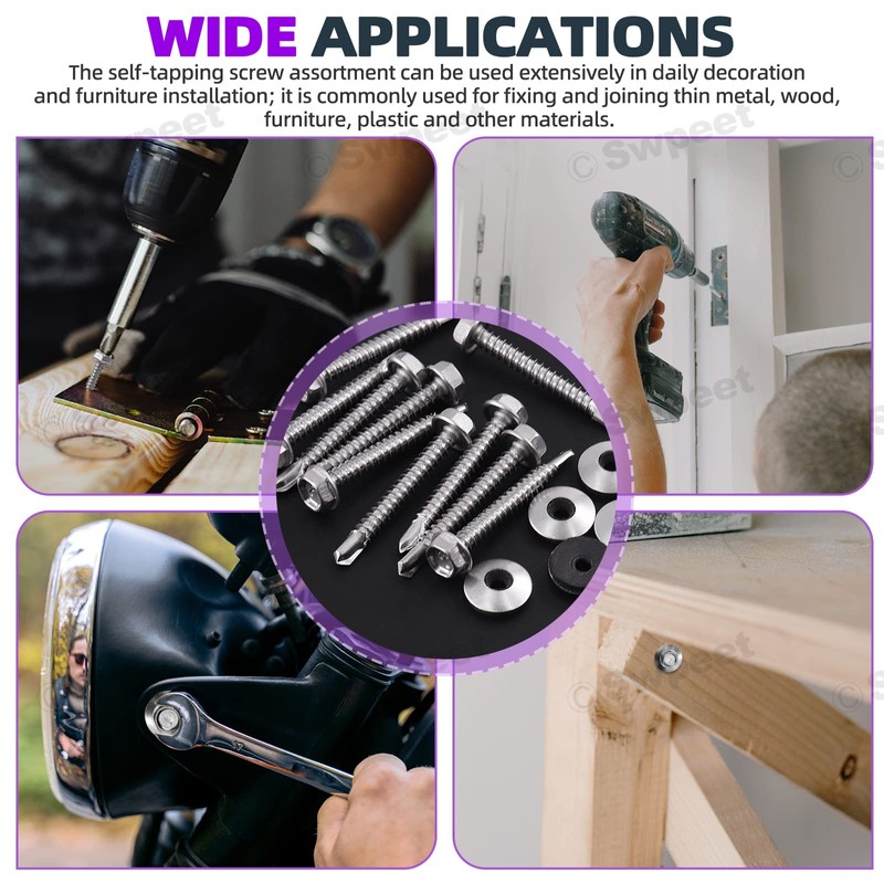 - 💥【 Self Drilling Screws Sizes】 ------ Diameter: #8 #10 #10 #14 | Length: 1/2"; 5/8"; 3/4"; 1"; 1-1/4"; 1-1/2"; 1-3/4"; 2; 2-1/2"; 3" | Head: Hex Washer Head | Drive Type: External Hex | Point Type: #8 #10 #12 #14 | Thread Type: Coarse (standard) | Material: 410 Stainless Steel. Purchasing these individually is a headache and expensive. We offer you so many sizes to choose from, you can choose from According to your actual needs.