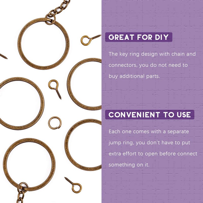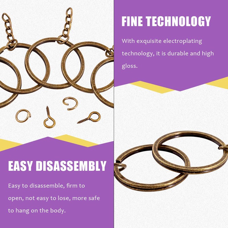 - ☛ 1. Lo que obtienes: hemos preparado llaveros planos de 7/5 pulgadas de 35 mm para ti, llaveros con cadena, recibirás 100 anillos abiertos y 100 pasadores de ojo de tornillo. 100 piezas de llaveros que satisfarán tus necesidades de proyectos de manualidades. Los llaveros divididos en diseño plano son muy seguros de usar, se mantienen cerrados de forma segura y no hay necesidad de preocuparse por que tus llaves se caigan. Superficie y borde lisos.