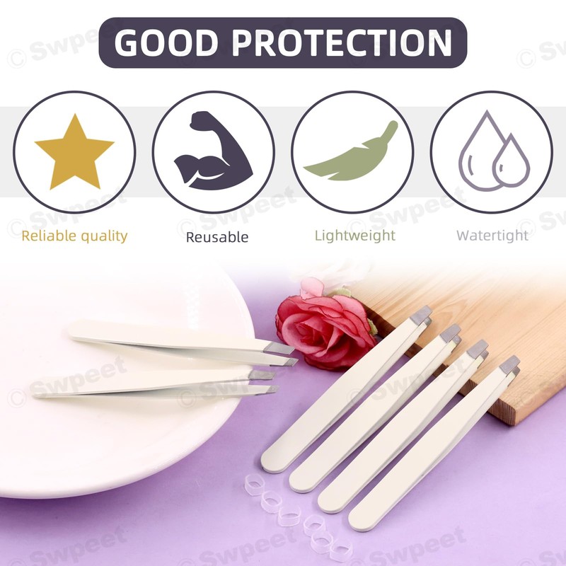 - What you get: in this kit you will receive a stainless steel slanted tip tweezers kit, which comes with 12 pieces white eyebrow tweezers, each stainless steel slanted tip tweezers is about 3.79 inches / 96 mm long, the tip length is approx. 8.37 mm, and the open is 4.7 mm, very convenient to use. It is a nice helper for you to hold eyelashes, keep tension, pluck eyebrows, remove hair, make crafts.