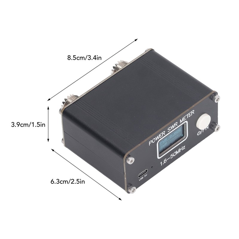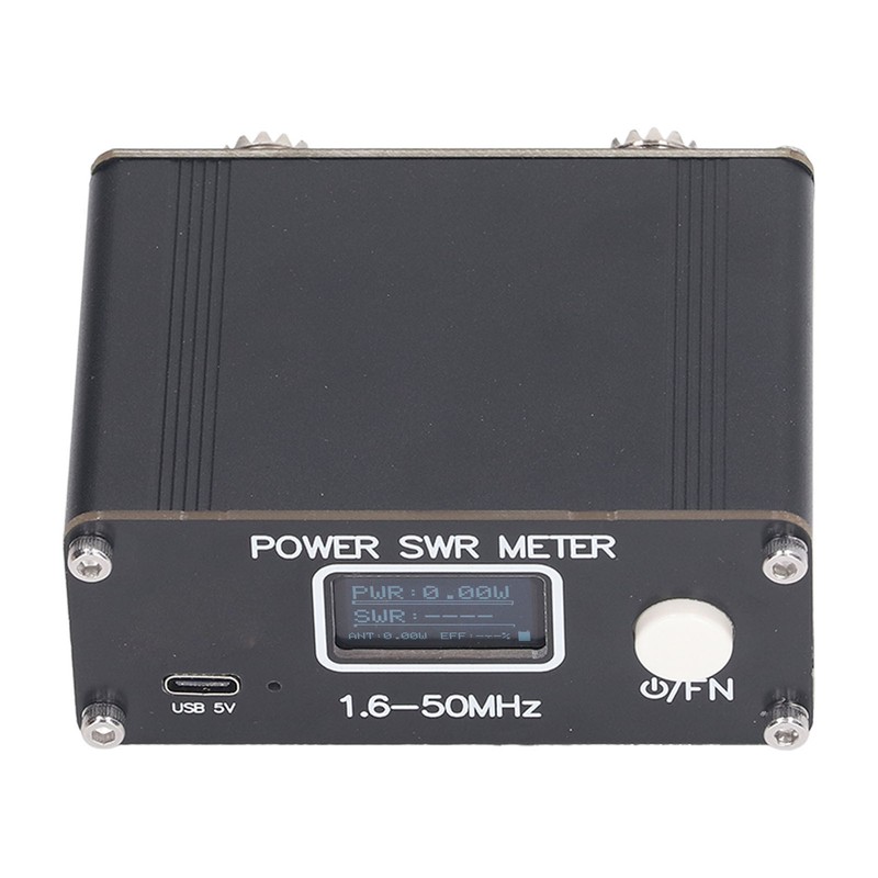 1、Customized Settings: This power meter supports multi display interface one button conversion function. You can not only customize the standing wave alarm setting, but also customize the shutdown delay time setting. 2、Multiple Functions: Power Standing Wave Meter supports time delay shutdown function, automatic function, battery undervoltage protection function, LED double indication function. 3、Easy To Carry: SWR meter is small and light, which makes it easy to carry and store, suitable for indoor and outdoor use. 4、Digital Display: The standing wave meter has a digital display that directly shows forward power, reflected power, antenna power, antenna efficiency, standing wave, battery voltage and accuracy. 5、Simple Operation: This standing wave meter power range of 0.5 to 120w, and the standing wave meter control layout is convenient and easy to operate.