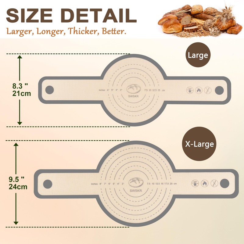 • 2-Sizes Value Pack Come with 2 sizes of silicone bread slings,X-Large one is 9.5' and Large one is 8.3' in diameter, fits all Dutch ovens 4Qt and above.