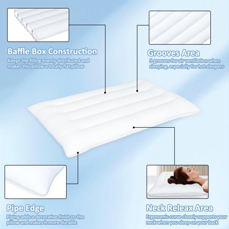 Soft and Supportive:The optimum thickness of our flat pillows provide a perfect balance between softness and support.