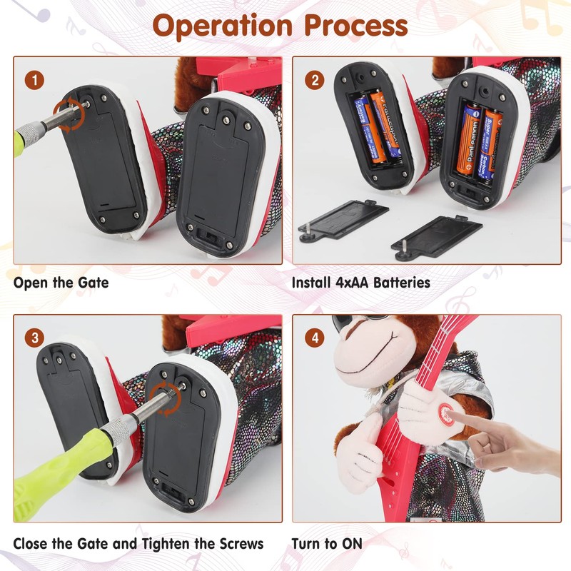 - 【Development of Musical Intelligence】: This dancing guitar monkey toy is not only educational, but also suitable for the whole family to play together. The perfect guitar monkey toy for home decor and parties, creating a lively and warm atmosphere. Give your child a helpful birthday gift.