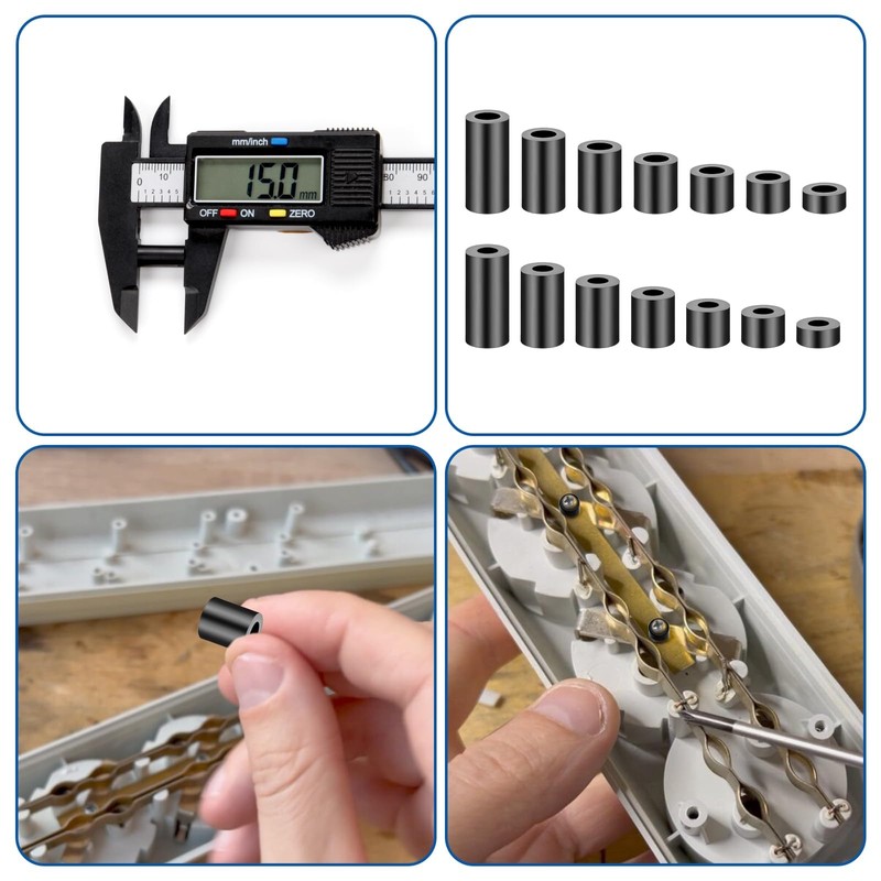 - Easy installation: SWTYExt offers plastic washers M6 in different sizes to facilitate the right selection. Thanks to the spacer plastic black threadless designs, screws can be inserted directly. Installation and disassembly is straightforward and allows for quick adjustment during maintenance and repair.