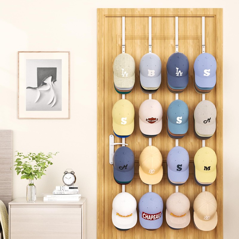 - [Convenient Door-Hanging Feature]: This over the door hat organizer is equipped with a door-hanging feature, making it incredibly easy to install and use. Simply hang it on doors as thick as less than 1.77", and you instantly gain a functional ball cap rack storage space without the need for drilling or complex installation. It's a hassle-free way to keep your hat racks for baseball caps within reach while saving valuable closet or door space