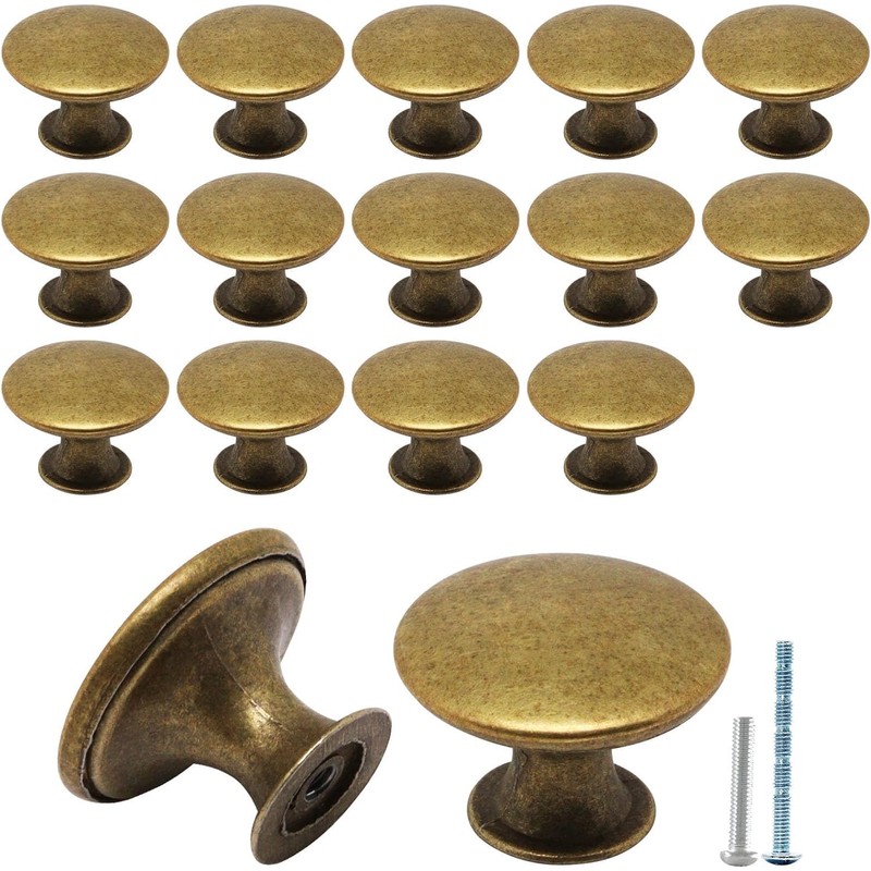 SWZHAI Brass Cabinet Knobs 16 Pcs, Round Drawer Knob Kitchen Drawer Knobs, Single Hole Cupboard Cabinet Door Knob Dresser Drawers Pulls Handles
