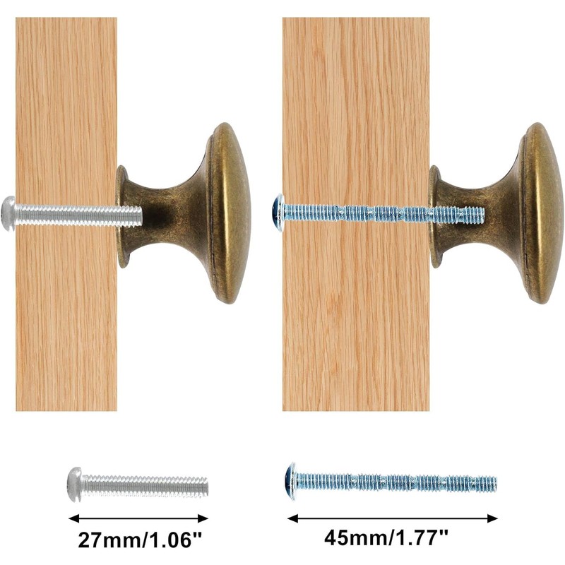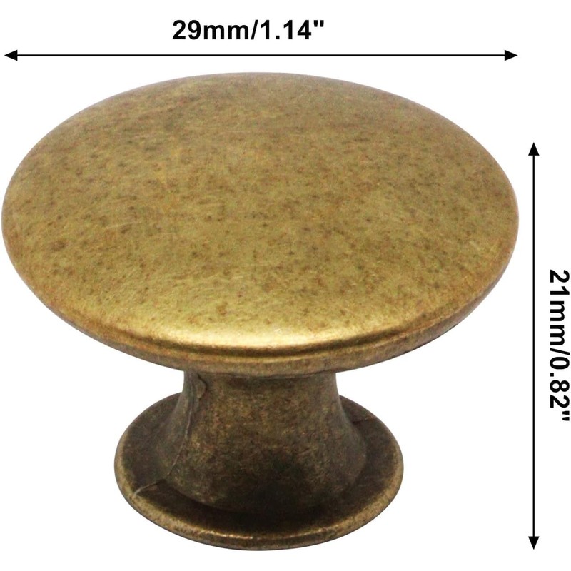 - Measurement - Diameter: 1.14"/29mm, Height: 0.83"/21mm. Our brass cabinet knob comes with mounting screws and can be used on most cabinet doors.
