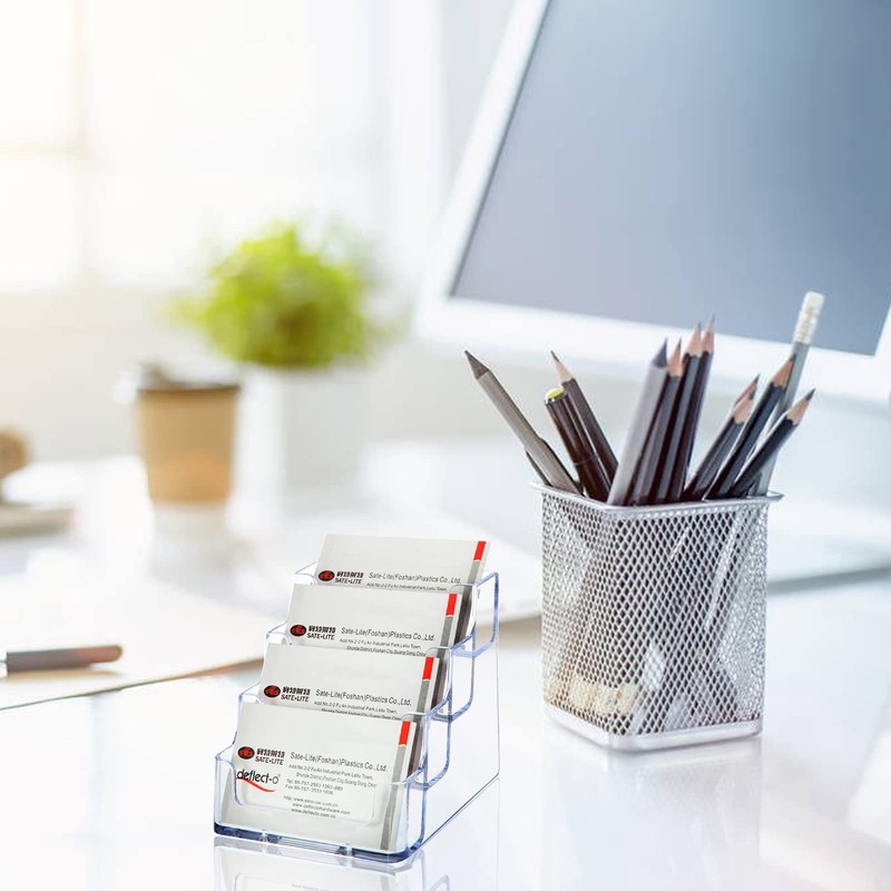 - 🌟 Package Includes: You get 2 pcs transparent plastic business card holder, 4-tier design can displays 4 separate business cards satisfy your daily use