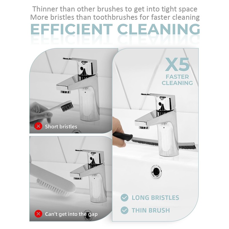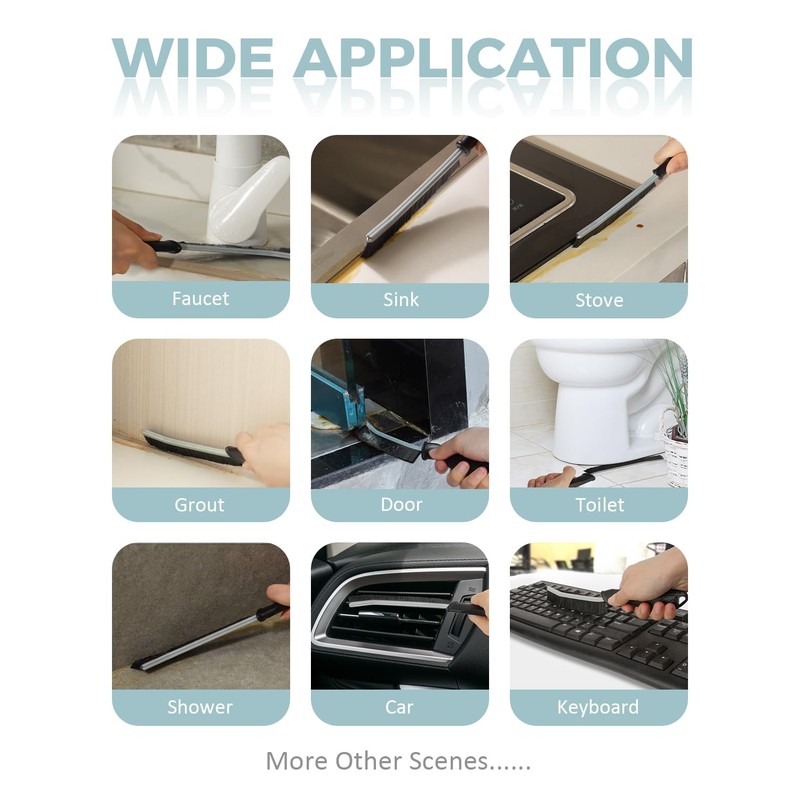 - Multifunctional Brushes: Suit for cleaning hard to reach and tight spots spaces, windowsills, tile countertop grout lines, sink, corners, fans, shower stand, stove, fridge gaskets, furniture, bathroom tub, closet, door tracks, bird feeders, car, laundry room, etc