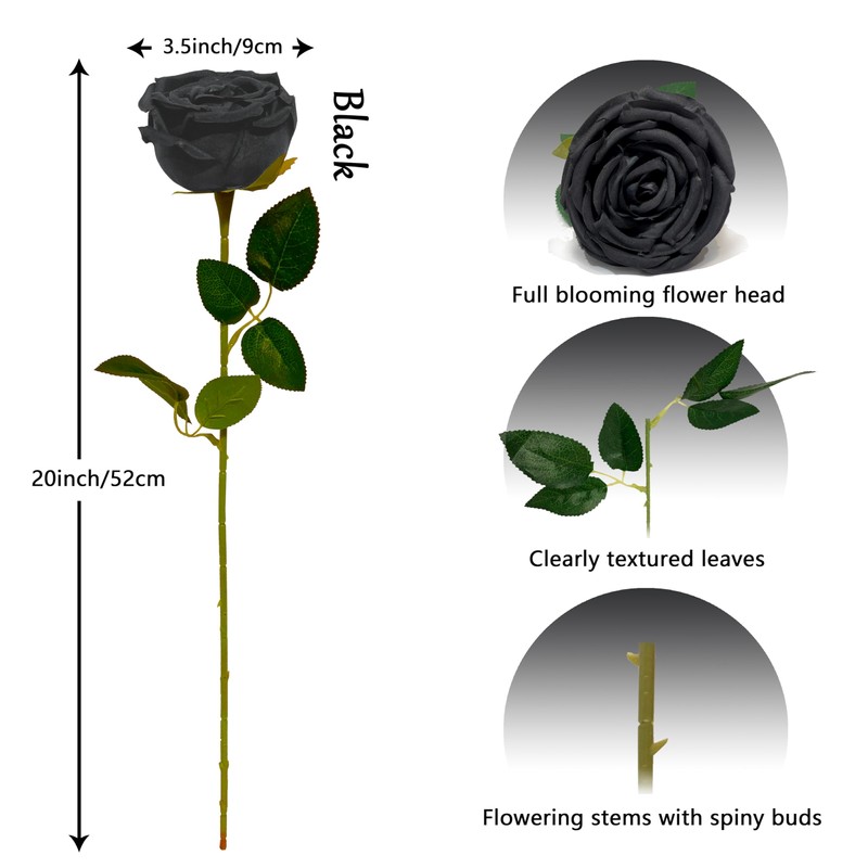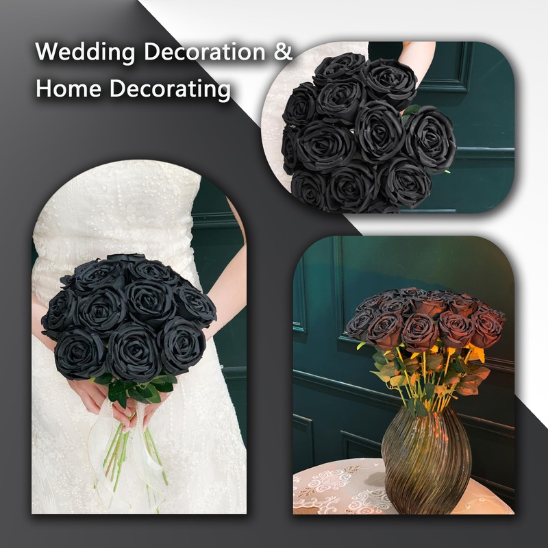 MAKE BEAUTY LAST FOREVER:Our black roses artificial flowers with long stem are perfect for a variety of occasions and settings, from decorating your home to creating centerpieces for special events. Whether you're looking for a bridal bouquet for a wedding or beautiful accents for birthdays and engagements. We have a wide range of colors: big red, rose red, wine red, black, champagne, rose yellow, pale pink, bright red and more, our fake roses are perfect for you.
