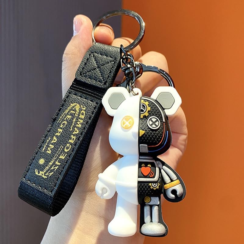SXQYBZ Cute Cartoon Mechanical Bear Keychain, Car Keychain, Personalized And Fashionable Backpack Bear Themed Keychain (white)