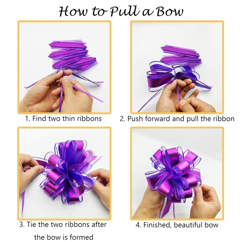 - Multi-Purpose Pull Bow: These exquisite gift bows are suitable for various occasions, such as weddings, newlywed car decorations, birthday parties, Christmas parties and family gatherings, adding a romantic and pleasant atmosphere to the event. They not only decorate gift wrapping, gift baskets, chairs, Christmas trees, wreaths and champagne, but also add flair to all kinds of handicrafts, making your gifts more unique and exquisite.