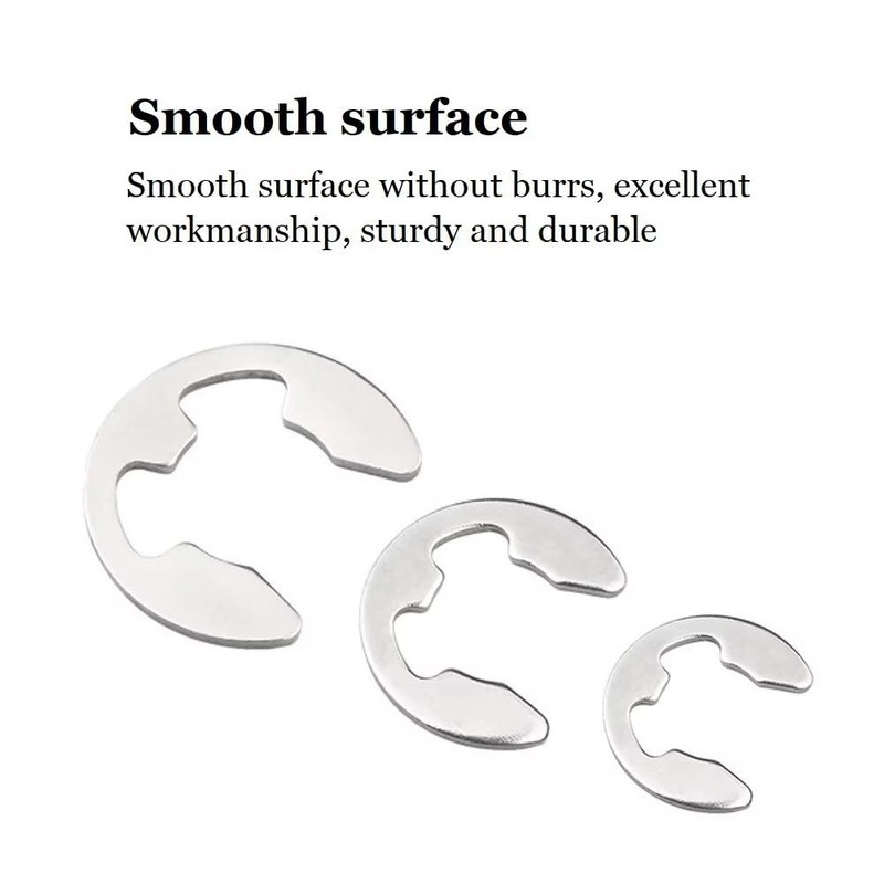 - Material: E Clip external retaining snap ring made of made of stainless steel, Smooth surface without burrs, have high hardness and a long service life with great performance in antirust and corrosion resistance.