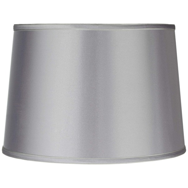 Sydnee Satin Light Gray Medium Drum Lamp Shade 14" Top x 16" Bottom x 11" Slant x 11" High (Spider) Replacement with Harp and Finial - Brentwood