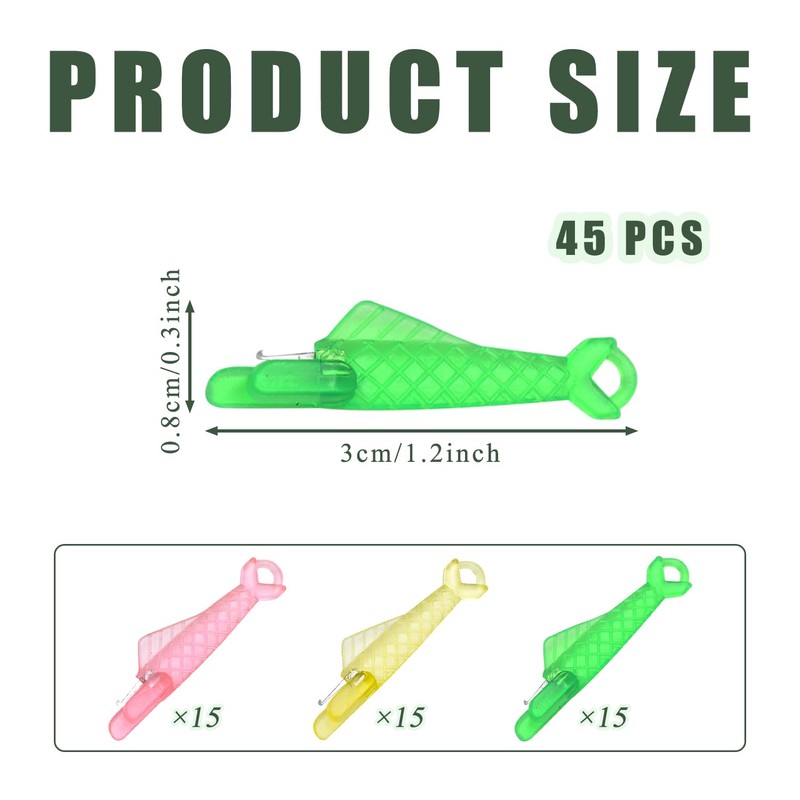 - Package Includes: You will receive 45 pieces of fish type needle threader in green, pink and yellow, 15 of each color, which can steadily fix the needle, easy to insert and take out from the machine, providing ample supply for your sewing needs.