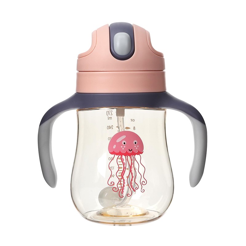 SYFIJXS Spill Proof no Spill Magic Sippy Cup with Straw with Handle, 9 ounces, Training Cup with Weighted Straw