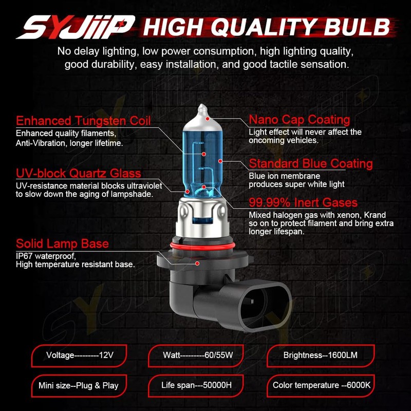 • Plug n play - SYJIIP Halogen headlight is 1:1 size with original halogen lamp, truly plug and play, easy to install. It is recommended to seek professional installation to avoid any issues.