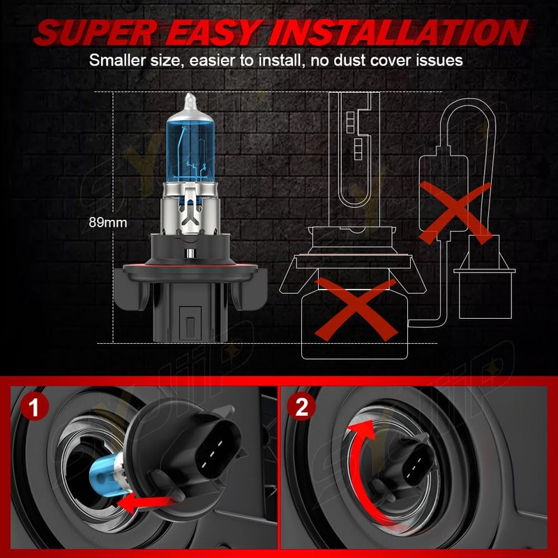 - Plug n play - SYJIIP Halogen headlight is 1:1 size with original halogen lamp, truly plug and play, easy to install. It is recommended to seek professional installation to avoid any issues.