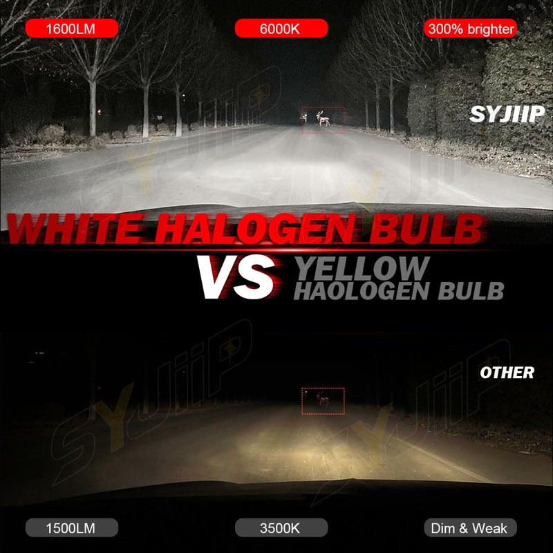 - Safe driving vision - Is it better for the headlights to be brighter? No, the headlights have a safe field of view and beam patterns. SYJIIP halogen lamps provide a perfect beam of light, without black spots in the field of view, illuminating oneself while also being safe for others.