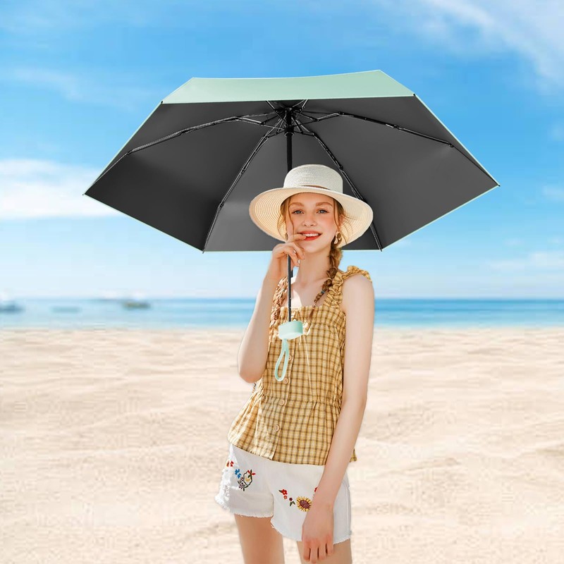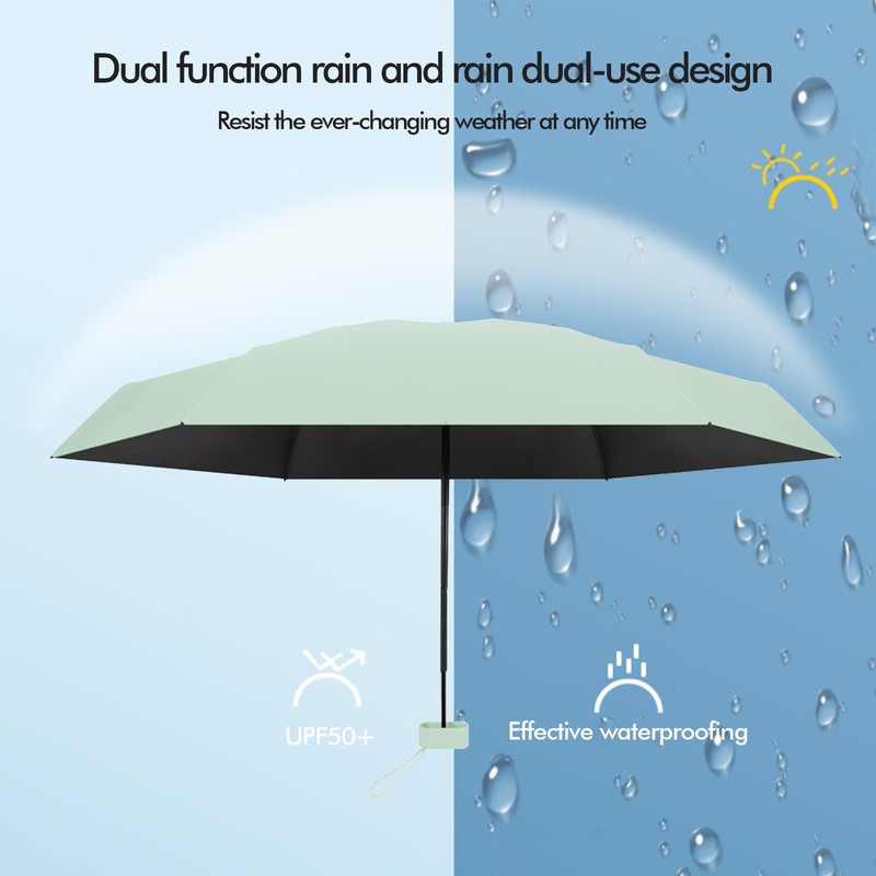 Sykerout Umbrella, Mini Umbrella, Pocket Umbrella, Compact Umbrella, Mini Foldable Travel Umbrella, UV Umbrella with Card Holder with Rope, mint green